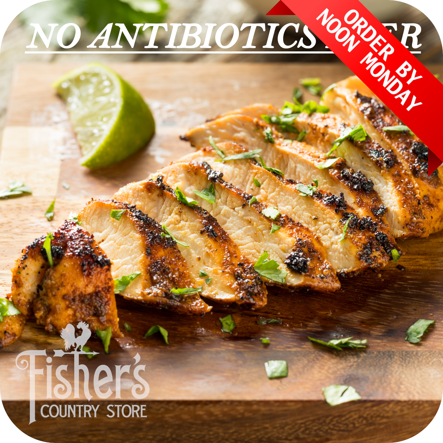 40 lb. Chicken, Trimmed Boneless Breasts, No Antibiotics Ever (4/10 lb. Exact Weight) (Order by noon Monday)