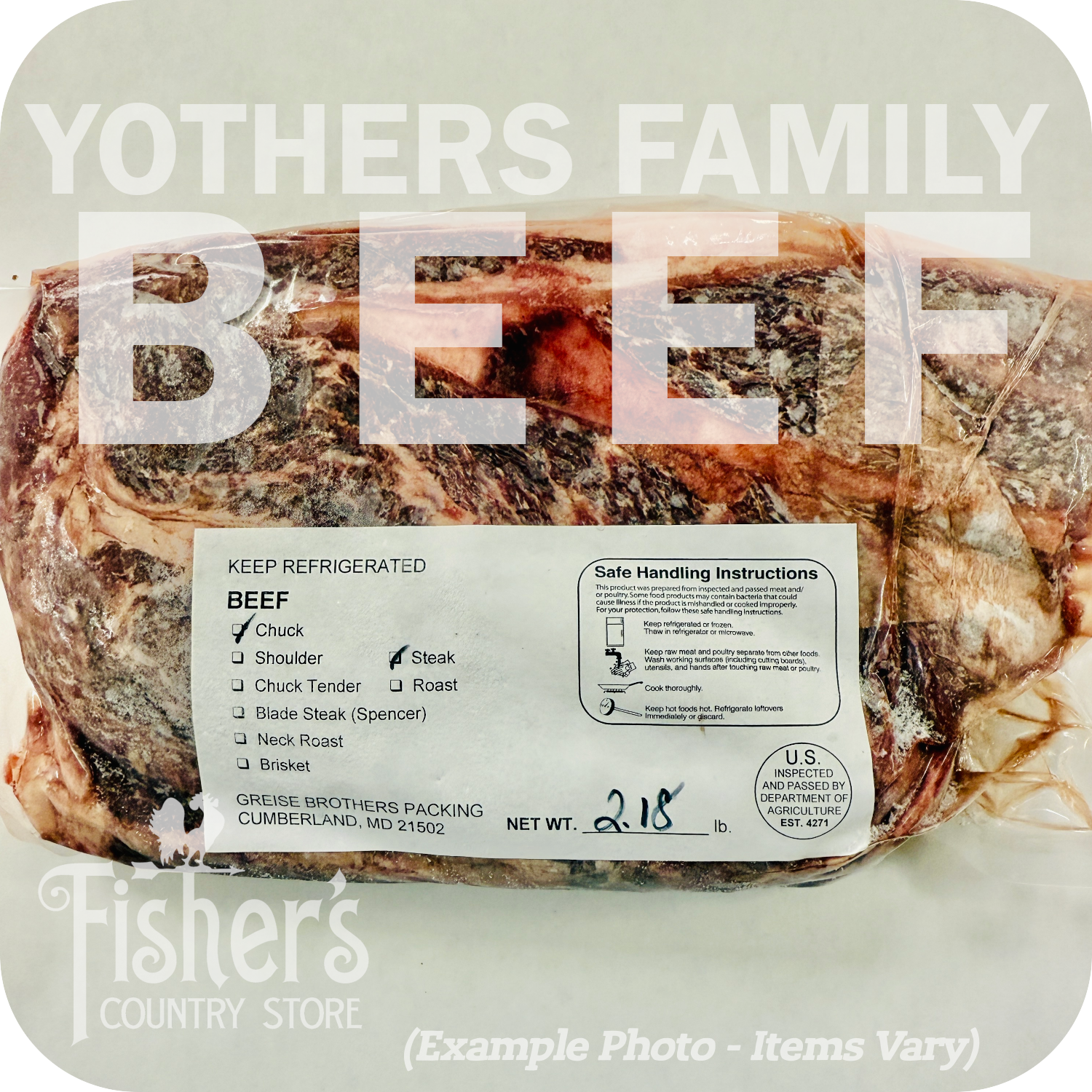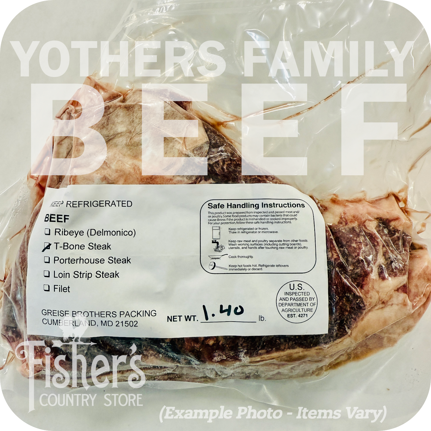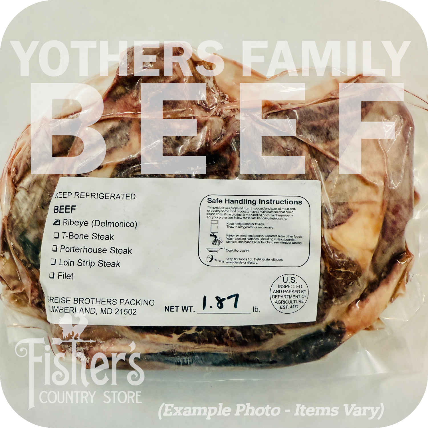 Yothers Family Beef is USDA inspected and professionally cut and packed by Greise Brothers Packing in Cumberland, Maryland.