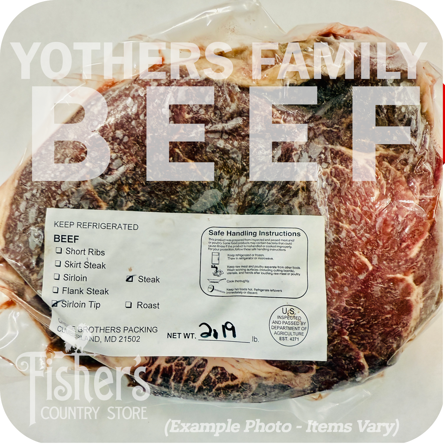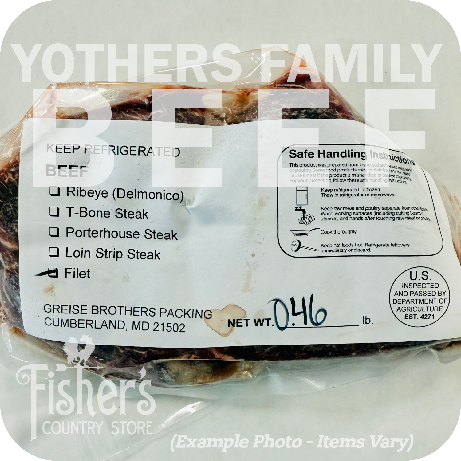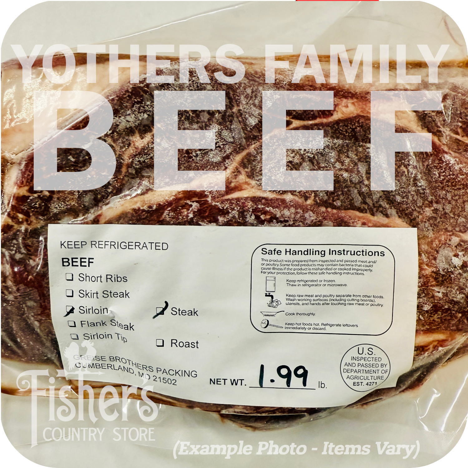 Yothers Family Beef is USDA inspected and professionally cut and packed by Greise Brothers Packing in Cumberland, Maryland.