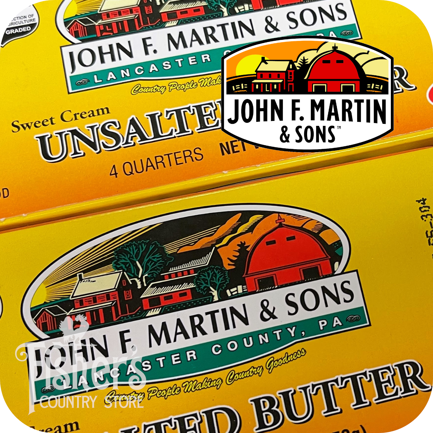 18 lb. (18/1 lb.) case John F. Martin unsalted Butter Quarters.