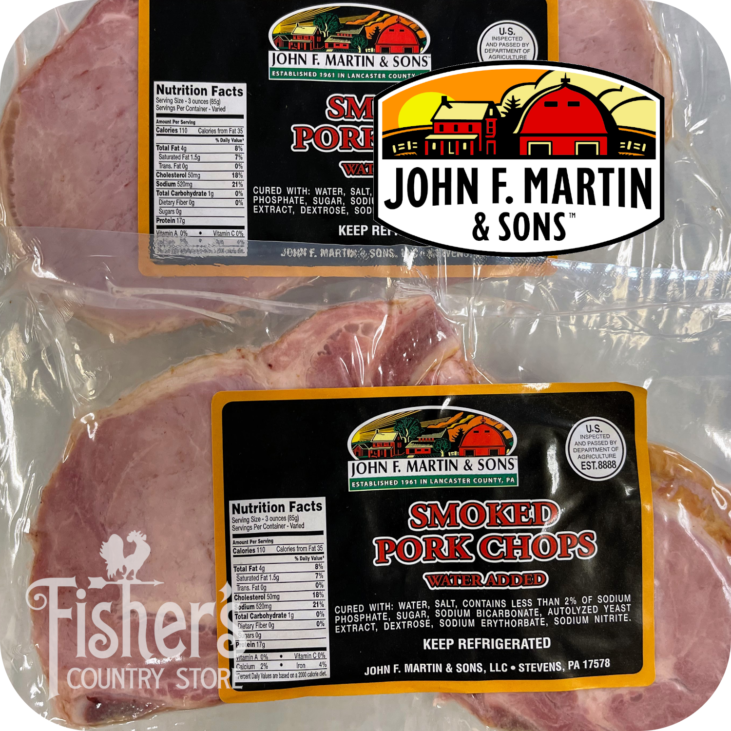 8 lb. (*approximate) 8/2-pack case John F. Martin Smoked Pork Chops. Vacuum sealed with 2 chops per package. This is a random weight product. You will be charged for the exact weight at the time of pickup.
