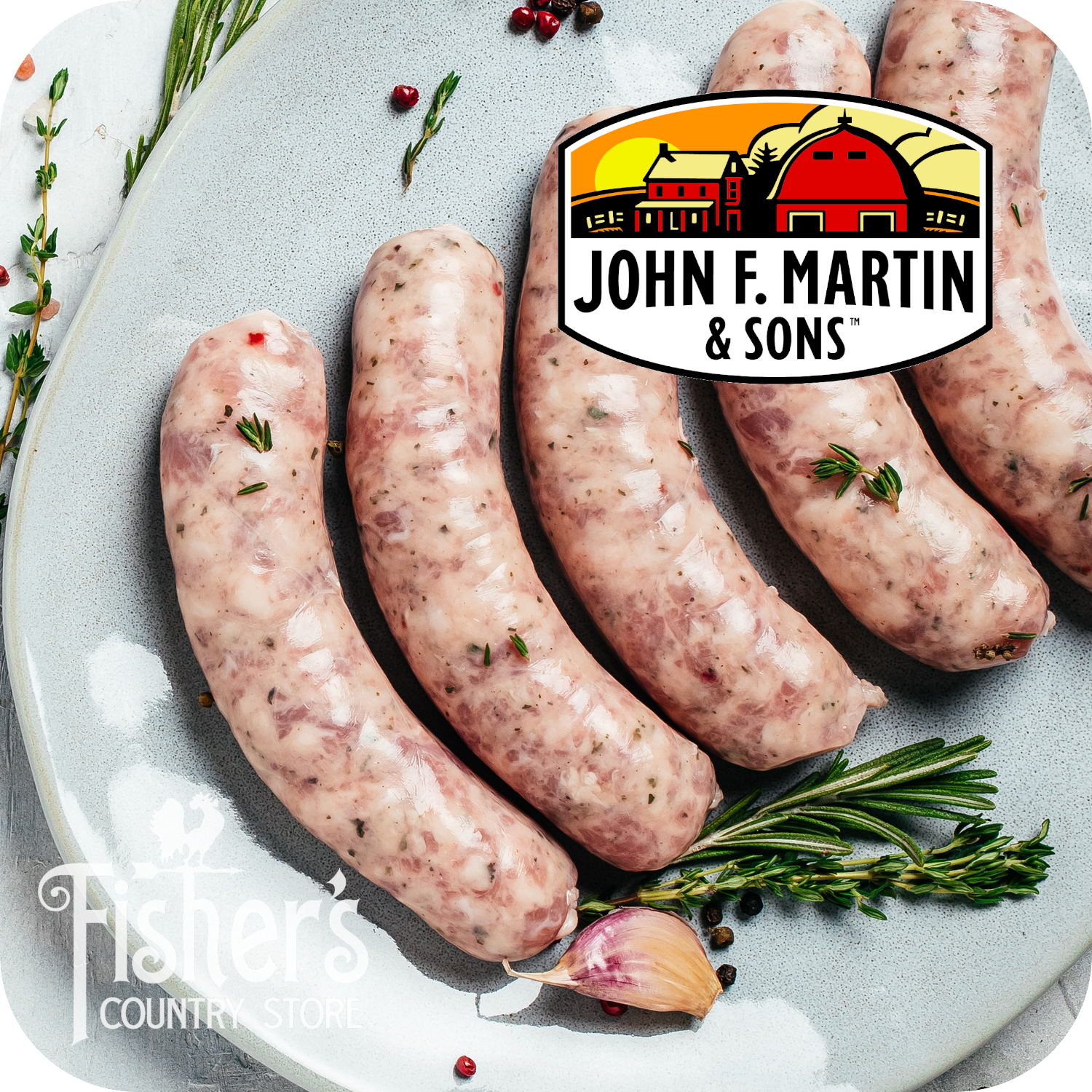 12 lb. (12/1 lb.) John F. Martin Fresh Chicken & Apple Sausage Grillers, 1.25 inch casing.